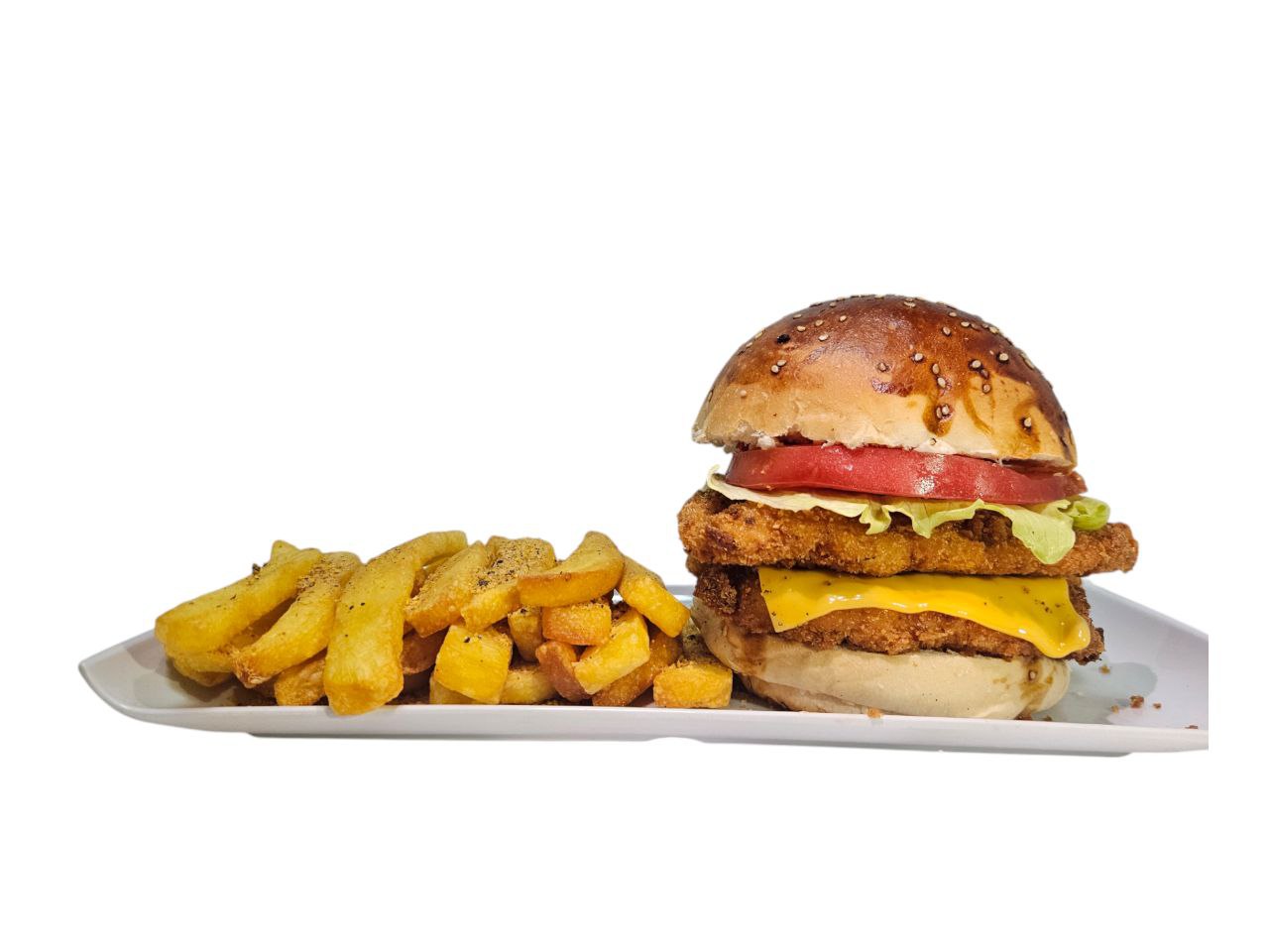 Taze hamburger ekmeği, 2 adet satır kıyma ile özenle hazırlanmış çıtır burger köftesi, domates, marul, chili sos, iri çıtır patates kızartması, paket ketçap, paket mayonez